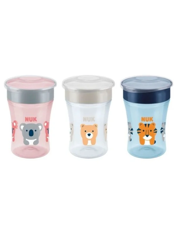 La tasse NUK Magic est dotée d’un bord d’abreuvoir à 360 ° qui empêche les déversements de déborder, ce qui aide les enfants à faire le grand pas en avant vers la tasse.