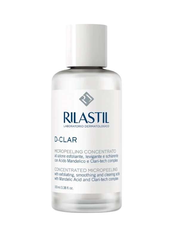 Fait partie de la gamme D-Clar de Rilastil, spécifiquement développée pour traiter l’hyperpigmentation, les taches solaires, le mélasma, les cicatrices d’acné et les irrégularités du teint.