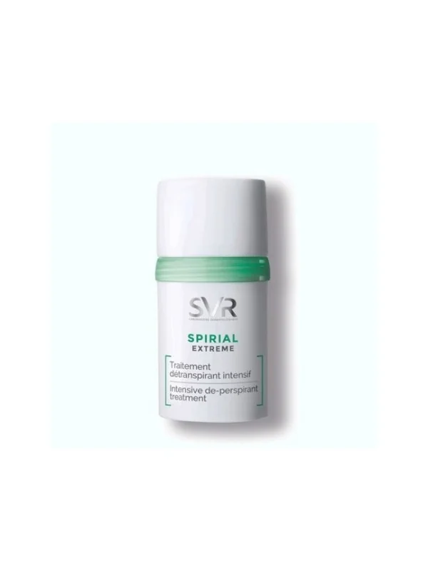 SVR SPIRIAL EXTRÊME possède une formule unique qui régule la transpiration excessive ou extrême tout en respectant les peaux sensibles. Le SVR SPIRIAL EXTRÊME est un traitement détranspirant hautement efficace pour réguler la transpiration et lutter contre les mauvaises odeurs dues à la transpiration, et qui apporte une solution permanente, grâce au pouvoir absorbant des agents sudo-régulateurs de sa formule.