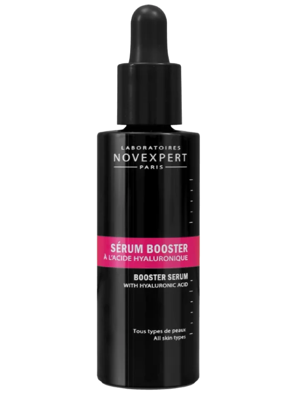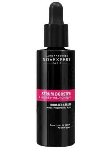 Novexpert Sérum Booster à l’Acide Hyaluronique 30 ml hydrate intensément, repulpe la peau et lisse les ridules pour un teint lumineux, frais et revitalisé.