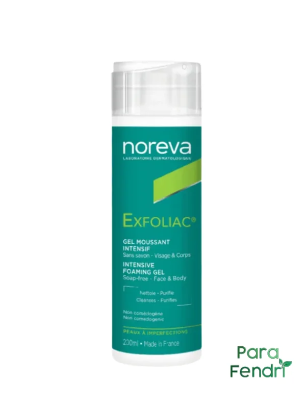 Noreva Exfoliac Gel Moussant Intensif 200 ml est un nettoyant spécialement formulé pour les peaux à imperfections modérées à sévères. Il aide à éliminer efficacement les impuretés et l’excès de sébum grâce à son action exfoliante douce, tout en respectant l’équilibre naturel de la peau. Sa formule purifiante contribue à assainir la peau, resserrer les pores et laisser le teint plus clair et plus lumineux sans provoquer de dessèchement.