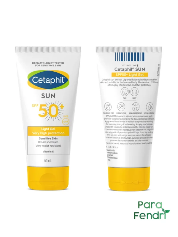 Cetaphil Sun Light Gel SPF50+ offre une très haute protection solaire UVA/UVB, avec une texture légère, non grasse et adaptée aux peaux sensibles ou grasses.