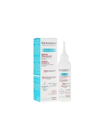 Le sérum Dermedic Capilarte stimulant et renouvelant la pousse des cheveux est destiné au traitement de la chute prématurée des cheveux de diverses étiologies, notamment hormonales et génétiques, chez la femme comme chez l'homme. Nourrit intensément les cellules du follicule pileux et élargit la phase anagène de la croissance des cheveuxProtège et régénère les cellules du follicule pileux et améliore leur viabilitéStimule la microcirculation dans le cuir chevelu, améliorant ainsi l'oxygénation de la matrice capillaireStimule la croissance de nouveaux cheveux bien structurésAugmente le volume et réduit nettement la chute des cheveuxIl bloque la production de dihydrotestostérone (DHT) - l'hormone responsable du raccourcissement de la phase de croissance des cheveux et de la miniaturisation des follicules pileux. Pour augmenter l'efficacité, il est recommandé d'utiliser le shampooing Dermedic Capilarte, qui stimule et reprend la pousse des cheveux.