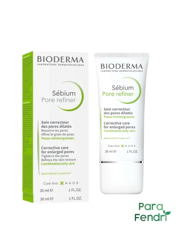 Sébium Pore Refiner de Bioderma est un soin correcteur spécialement formulé pour les peaux mixtes à grasses sujettes aux pores dilatés. Il agit sur l’excès de sébum provoqué par différents facteurs tels que le stress, la pollution ou le tabac, responsables de la dilatation des pores. Grâce au complexe breveté Fluidactiv®, il aide à préserver la qualité du sébum et à prévenir l’obstruction des pores. Sa formule enrichie en agents antioxydants contribue à préserver l’éclat naturel de la peau. Sa texture fluide et légère pénètre rapidement et laisse un fini velouté, idéal comme base de maquillage.