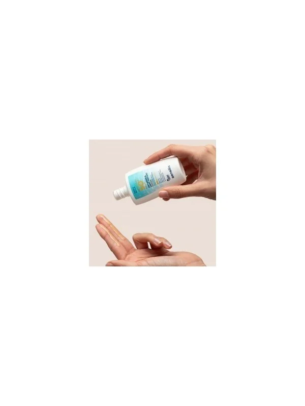 Crème solaire aqueuse hypoallergénique SPF 50+ avec couleur très haute protection. Convient aux peaux sensibles. Texture ultralégère. Protège des effets nocifs du soleil. Prévient l'apparition de taches et hydrate la peau. Fini non gras, couvrance naturelle et soyeuse. Sa formule vegan respecte l'océan et votre peau.