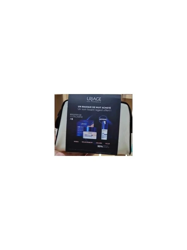 Uriage trousse age absolu masque de nuit Uriage age absolu masque de nuit redensifiant Le masque de nuit redensifiant âge absolu Uriage est un soin anti-âge destiné aux peaux matures. Avec l’âge, la production de collagène endogène diminue. La peau perd son élasticité et se relâche. Les rides commencent à s’esquisser avant de marquer plus profondément le visage. Le relâchement de la peau et l’apparition des rides sont également dus à des facteurs extérieurs comme le soleil, la pollution, le tabac ou encore l’alcool qui entraînent un vieillissement prématuré des cellules de l’organisme. Pour redonner vie à votre peau et vous permettre de retrouver une mine éblouissante, les laboratoires dermatologiques Uriage ont créé le Masque de nuit redensifiant Uriage. Ce soin anti-âge Uriage est adapté à tous les types de peaux, même sensibles. Il renferme de l’eau thermale d’Uriage, naturellement riche en oligo-éléments, qui va apaiser, hydrater et renforcer la protection naturelle de la peau. Le peptide procollagène, actif anti-âge global, va s’attaquer aux rides et au relâchement cutané en stimulant la production de collagène afin de redensifier et de repulper la peau. Le rétinol et l’acide hyaluronique vont s’associer pour stimuler la régénération des cellules cutanées, lisser et raffermir la peau. Le masque de nuit redensifiant Age Absolu Uriage renferme également des vitamines C et E, de puissants anti-oxydants qui vont redonner de l’éclat à votre teint et protéger votre peau du stress oxydant. Pour un soin anti-âge complet, ce masque nuit Uriage intègre également un complexe végétal relipidant à base de beurre de karité, de beurre d’illipé et d’huile de jojoba pour nourrir intensément votre peau, l’assouplir et l’adoucir. Enfin un extrait de grenade complète la formule de ce masque anti-âge Uriage afin de revitaliser votre peau et vous donner un teint frais et une mine resplendissante dès le réveil. La texture rose de ce masque visage Uriage est très confortable et facile à appliquer. Nuit après nuit, vos rides sont lissées, et jour après jour votre peau retrouve toute son élasticité et sa beauté. URIAGE Age Lift Soin Lissant Regard MULTI ACTION 15ml offert Sa texture fondante agit simultanément sur les signes de l’âge et sur les agressions quotidiennes que subit la peau : lumière bleue, UV, pollution, stress, fatigue… Enrichi en actifs décongestionnants et flouteurs, il atténue l’apparence des rides, poches, cernes et rehausse les paupières pour un effet liftant, et lisse le contour de l’œil. Diminue l’apparence des ridules et des rides, lutte contre la perte de tonicité et le manque de fermeté, redonne vitalité et éclat. La peau est protégée de la pollution et des méfaits de la lumière bleue grâce au BLB*. Les cernes et les poches sont visiblement diminués grâce aux actifs décongestionnants et flouteurs. Enrichie en Eau Thermale d’Uriage et en Cires Végétales pour une peau souple et hydratée. + trousse offert