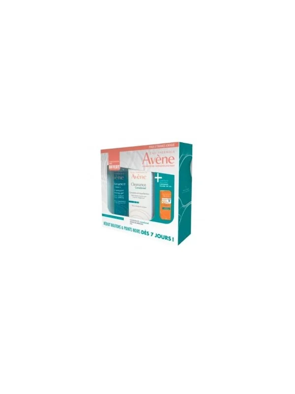 Cleanance comedomed concentré anti imperfection 30ML: Le Concentré anti-imperfections Comedomed d'AVENE offre une double action : d'une part, il lutte contre les boutons et points noirs déjà présents, et d'autre part, il prévient leur apparition future. Les effets des deux soins combinés sont visibiles en 7 jours et les risques de récidives sont atténués. Cleanance gel nettoyant offert 100ML: est un gel purifiant et matifiant sans savon pour les peaux grasses à imperfections. Echantillon cleanance solaire SPF 50+ 5ML: Une très haute protection solaire SPF50+ pour les peaux grasses à imperfections.