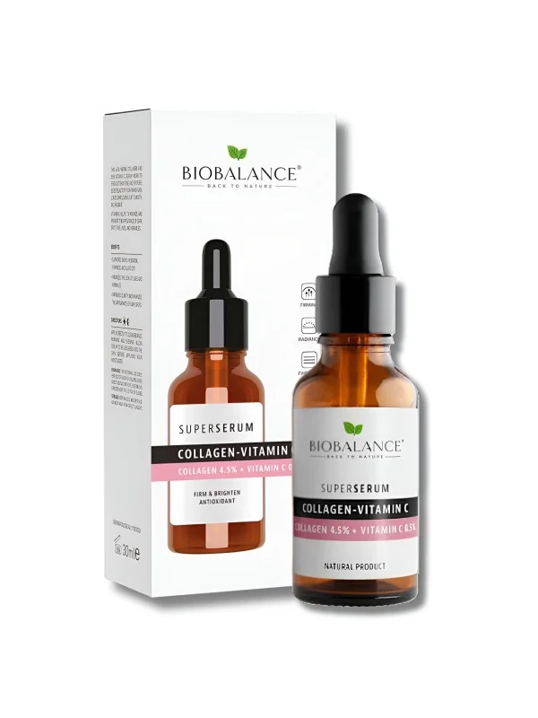 Revitalisez votre peau avec le Bio Balance Super Sérum Collagène-Vitamine C. Ce sérum puissant associe 4,5 % de collagène marin et 0,5 % de vitamine C pour offrir des résultats visibles sur l’éclat et la jeunesse de la peau.
