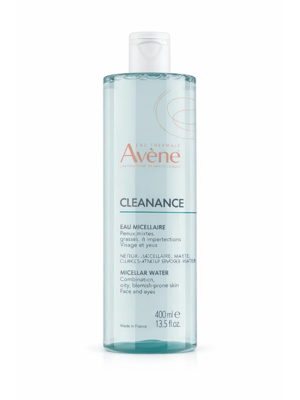 L'eau miceallaire Avene Cleanance permet elimine en douceur et sans rinçage les impuretés du visage et des yeux, y compris le maquillage