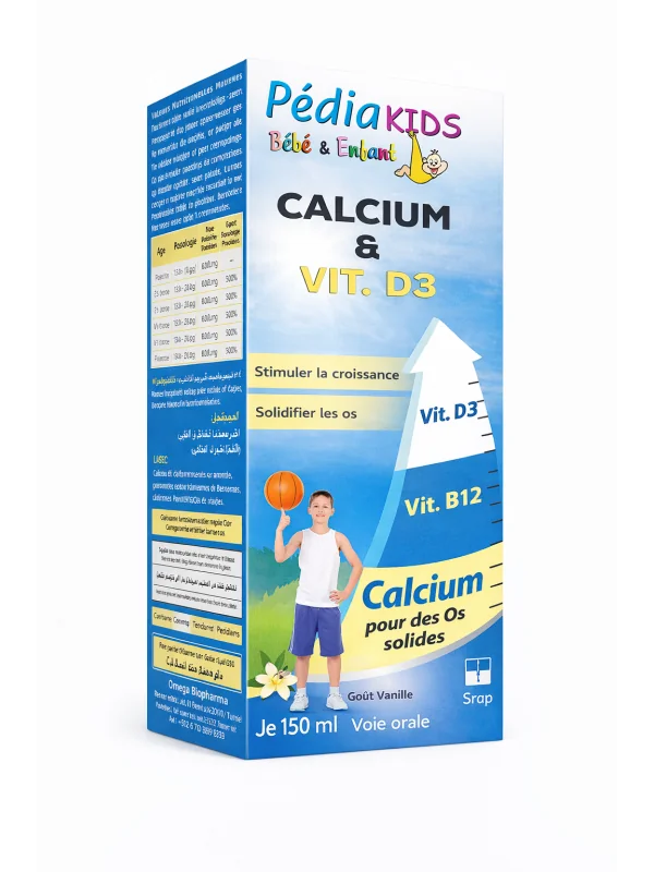Pédiakids Calcium & Vitamine D3 est un complément nutritionnel conçu pour accompagner la croissance et le développement osseux des enfants. Sa formule associe calcium, vitamine D3 et vitamine B12 pour soutenir la solidité des os, prévenir les carences et favoriser un bon équilibre du métabolisme phospho-calcique.