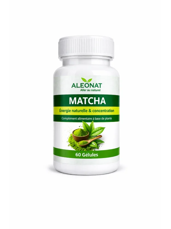 ALEONAT MATCHA est un complément alimentaire naturel à base de thé vert japonais (Camellia sinensis), reconnu pour ses nombreux bienfaits sur l’énergie et la concentration. Grâce à sa richesse en antioxydants, caféine naturelle et L-théanine, il offre une énergie progressive, stable et sans effet de fatigue.