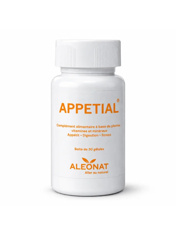 APPETIAL® est un complément alimentaire à base de plantes, vitamines et minéraux, conçu pour stimuler l’appétit naturel tout en favorisant une digestion confortable. Il aide également à apaiser le stress et les tensions pouvant impacter l’appétit.