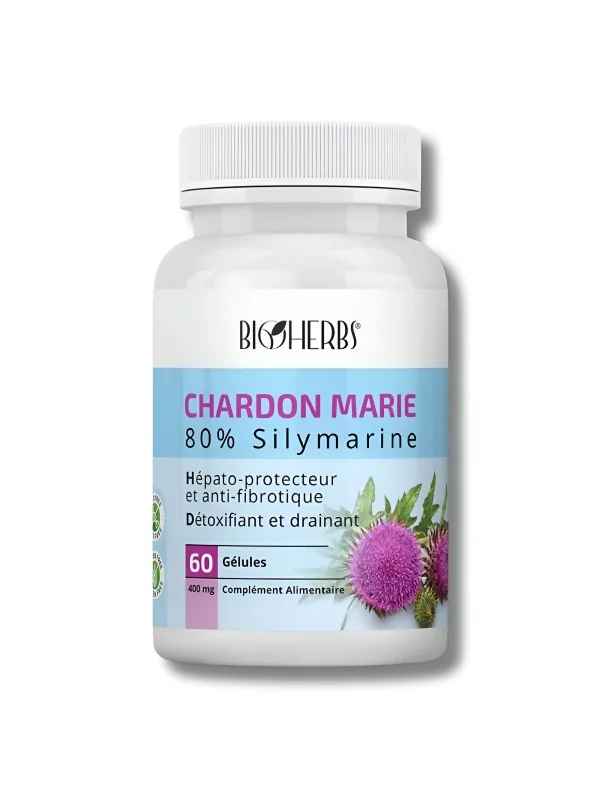 Le Chardon Marie, ou Silybum marianum, est une plante médicinale originaire de la région méditerranéenne et de certaines parties de l'Europe. Ses graines contiennent un composé actif appelé silymarine, qui est reconnu pour ses bienfaits sur la santé du foie. Le Chardon Marie est souvent utilisé sous forme de supplément alimentaire pour soutenir la fonction hépatique.