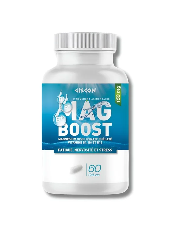 MagBoost est un complément alimentaire en gélules, à base de magnésium chélaté, qui aide à réduire la fatigue, à maintenir l’équilibre électrolytique et un métabolisme énergétique normal.