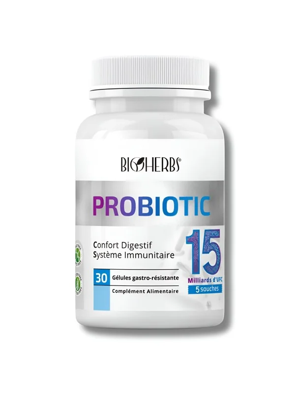 Mélange de 5 souches probiotiques dosé à 15 milliards UFC :