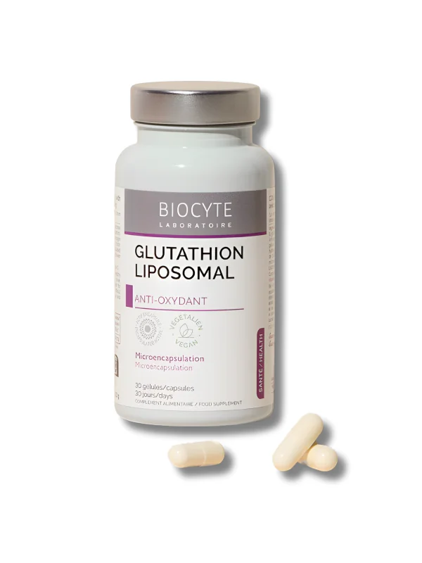 Biocyte Glutathion Liposomal protège les cellules contre le stress oxydatif grâce au glutathion et à la vitamine C, avec haute biodisponibilité et assimilation optimale.