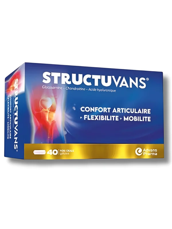 STRUCTUVANS® est un complément alimentaire spécialement formulé pour soutenir le confort articulaire et améliorer la mobilité. Il associe des actifs reconnus pour leur rôle essentiel dans la structure et l’élasticité des cartilages, des tendons et de la peau.