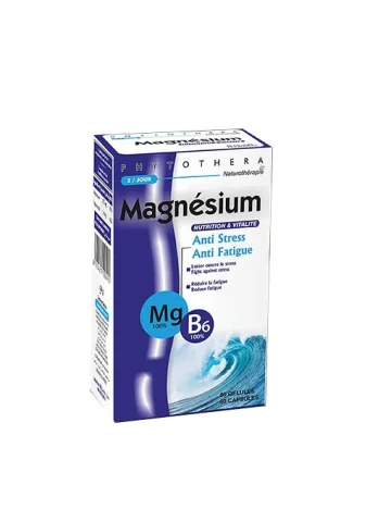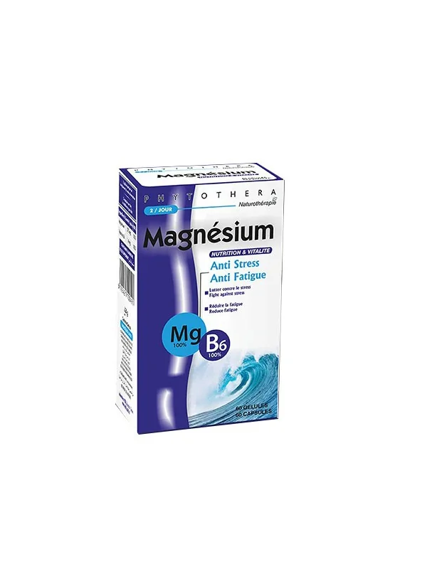 PHYTOTHERA MAGNESIUM un anti-stress qui aide à apaiser l'esprit et à soulager les crampes répétetives et les tensions musculaires. L'équilibre du magnésium dans le corps est essentiel à une bonne santé. Le magnésium est nécessaire à des centaines de réactions métaboliques, notamment la synthèse des protéines, la production d'énergie et le développement des os. Le magnésium régule également le système nerveux et maintient une fonction musculaire et nerveuse normale.
