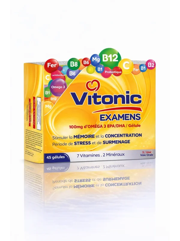 VITONIC Examens B aide à améliorer la mémoire, la concentration et à réduire la fatigue mentale pendant les périodes d’examens et de stress.