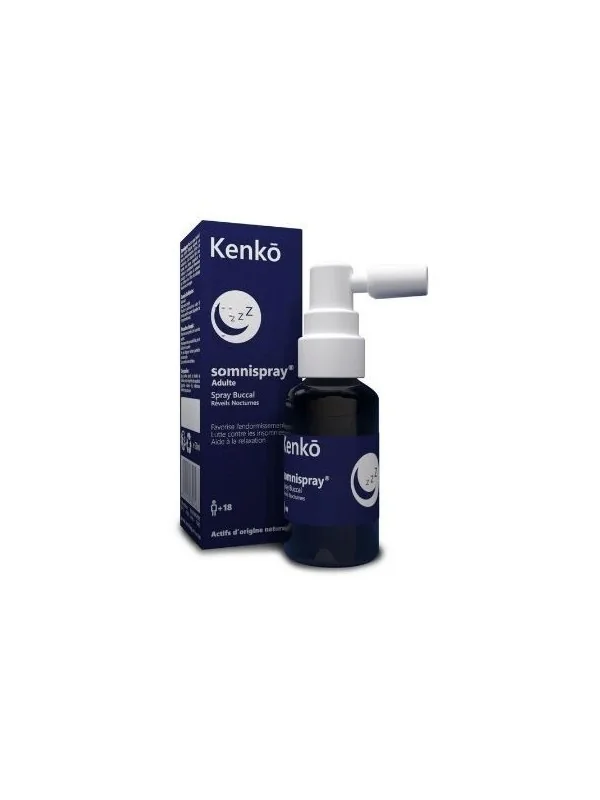 KENKO Somnispray® Adulte spray buccal Adulte est un spray buccal à base d’actifs d’origine naturelle, qui favorise l’endormissement. Grâce à la mélatonine, à la vitamine B6 et aux extraits des plantes (coquelicot et mélisse), ce complément alimentaire soulage les troubles du sommeil et atténue les effets du décalage horaire lors des voyages