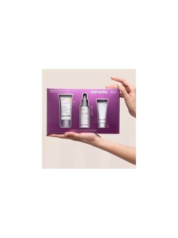 Sensilis Photocorrection [D-Pigment 50+] Couleur 15 ml Soin anti-âge à très haute photoprotection. Corrige et camoufle les imperfections des peaux hyperpigmentées. Photocorrection [D-PIGMENT 50+] offre une expérience d'application agréable grâce à sa texture mousse colorée et à son doux parfum floral et fruité. Non comédogène. Résistant à la transpiration. Sensilis D-Pigment [ATX B3 Serum] 30 ml En seulement 2 mois, -10% de mélanine dans les taches sombres et -18% de visibilité de celles-ci. Peut être utilisé en été. Non comédogène. Convient à tous les types de peau. Testé dermatologiquement sur les peaux sensibles. Convient aux végétaliens. Sensilis D-Pigment [AHA10 Nuit] 15 ml Avec 10% PHA - Acide Maltobionique et Gluconolactone - et l'Acide Ellagique liposomé, il montre d'excellents résultats dans la réduction des imperfections dès le premier mois. Non comédogène. Convient à tous les types de peau. Testé dermatologiquement sur les peaux sensibles. Convient aux végétaliens.