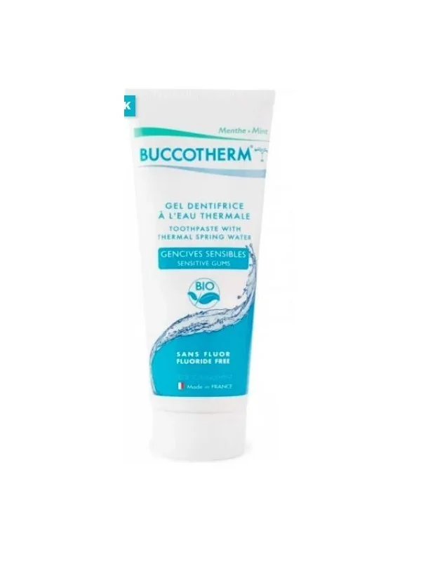 Concentré en Eau thermale de Castéra-Verduzan, apaisante et reminéralisante, ce dentifrice non abrasif favorise la diminution des saignements occasionnels et des sensibilités gingivales. Le gel dentifrice bio pour gencives sensibles de Buccotherm est destiné à soulager les inflammations et les irritations gingivales. Grâce à son pH basique, il agit avec un effet tampon sur les gencives. Il est doté d’une texture agréable et d’une douceur extrême. Ce gel dentifrice est formulé à base d’eau thermale de Castéra-Verduzan qui dispose de vertus apaisantes et cicatrisantes favorisant la réduction des saignements. Le gel dentifrice bio à l'eau thermale Buccotherm convient aux adultes souffrant d’hypersensibilité gingivale, de gingivites (inflammation de la gencive) ou sujets à l’apparition fréquente d’aphtes. Il est très efficace et respectueux de votre bouche.