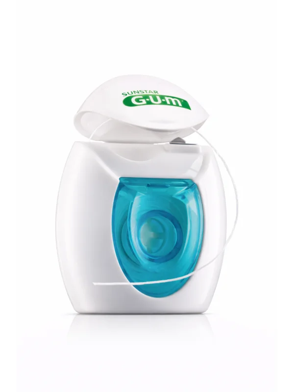Fil dentaire GUM Original White blanchissant au fluor et à la silice micronisée, aide à éliminer plaque et taches entre les dents pour une hygiène bucco-dentaire optimale.
