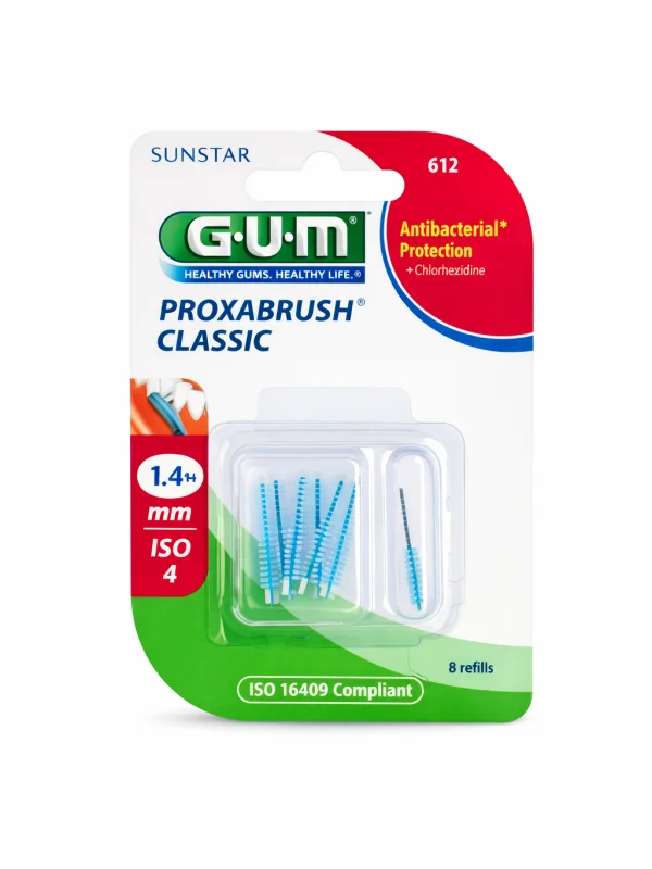 Les brossettes Proxabrush Classic s’utilisent avec le manche Classic Bleu. De forme cylindrique et disponibles en 4 diamètres différents, elles s’adaptent efficacement à tous les espaces interdentaires.