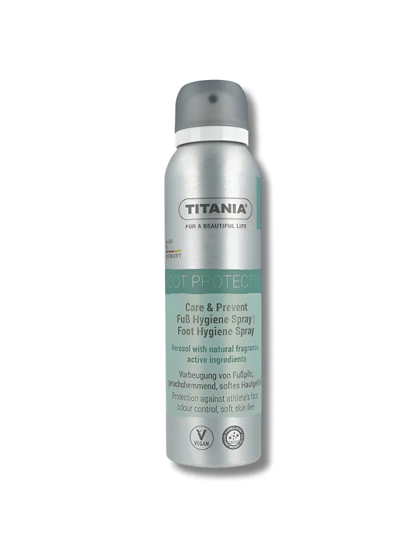 Le spray Titania pour l’hygiène des pieds rafraîchit, protège et prévient la transpiration et les mauvaises odeurs pour des pieds sains et confortables.