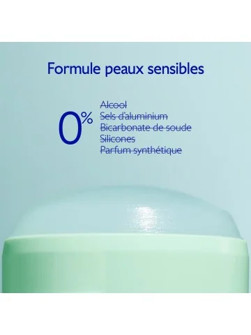 Sans sels d'aluminium. Sans alcool. Sans bicarbonate de soude. Sans silicones. Sans parfum synthétique