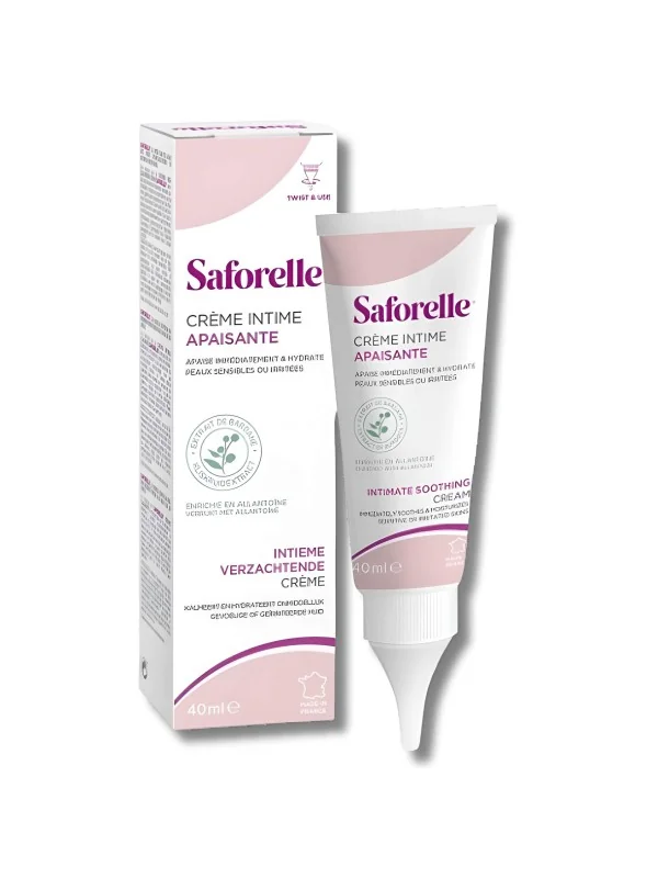 Saforelle Crème Apaisante Intime apaise les irritations, hydrate intensément et respecte l’équilibre des muqueuses sensibles pour un confort intime durable au quotidien.