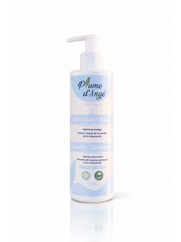 Gel Lavant Doux Plume d’Ange nettoie en douceur le corps et les cheveux de bébé tout en apaisant et protégeant sa peau sensible.