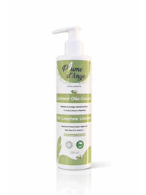 Le Liniment Oléo-Calcaire Plume d’Ange est un soin naturel traditionnel associant huile d’olive et eau de chaux. Cette émulsion onctueuse nettoie en douceur et protège efficacement la zone sensible du siège de bébé.