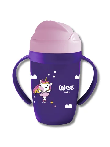 Biberon 150ml à large goulot Wee Baby, conçu pour les bébés de 0 à 6 mois avec tétine souple, système anti-colique et compatibilité tire-lait.