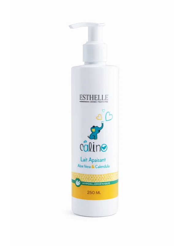 Le lait apaisant Esthelle Calino est un soin doux spécialement conçu pour la peau sensible et fragile des bébés. Enrichi en Aloe Vera et en Calendula, il hydrate intensément tout en apaisant les irritations et les rougeurs.