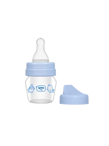 Biberon Chicco 250ml bleu avec tétine silicone anti-colique, capuchon anti-fuite, col large et design ergonomique pour une prise en main facile.
