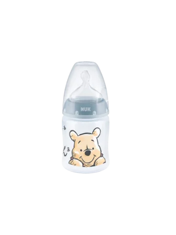 Biberon Polypropylène 150 ml - NUK FIRST CHOICE+ - Col large : Facilite le remplissage du biberon et le nettoyage. - Biberon en polypropylène incassable : Matériau robuste, léger et durable. - Tétine physiologique NUK FIRST CHOICE+ : Conçue pour ressembler à la forme du sein maternel, favorisant une prise naturelle pour le bébé. - Air System Anti-colique : Technologie intégrée qui réduit le risque de coliques en permettant à l'air de circuler et en évitant qu'il n'entre dans l'estomac du bébé. - Contenance : 150 ml, idéal pour les premiers repas de bébé.