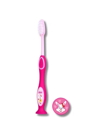 Brosse à dents Chicco 3-6 ans : poils souples, design ludique et ergonomique pour un nettoyage efficace et doux des dents et des gencives des enfants.