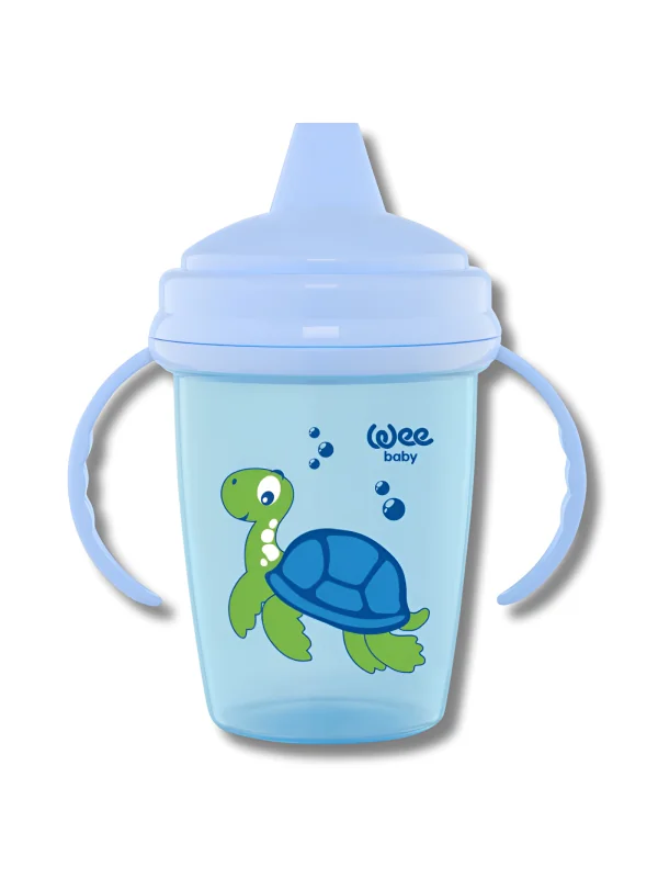 Le gobelet anti-déversement Wee Baby aide bébé à boire seul, sans fuites et avec confort grâce à son embout en silicone et ses poignées ergonomiques.