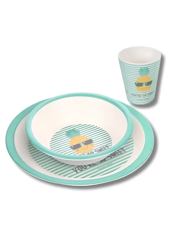 Set de 3 pièces : 1 assiette, 1 bol, 1 verre – convient aux enfants dès 6 mois.