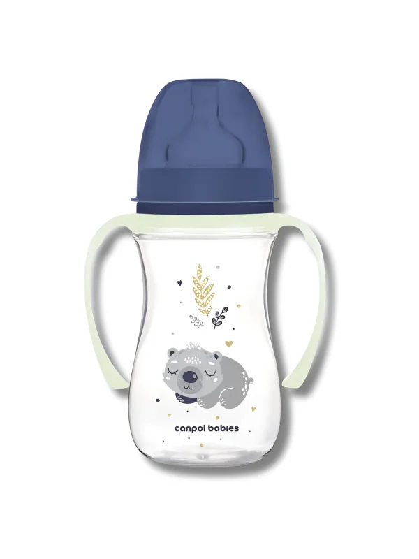 Le biberon Sleepy Koala 240 ml de Canpol Babies offre confort, sécurité et réduction des coliques grâce à sa tétine anti-colique douce et sa conception ergonomique.