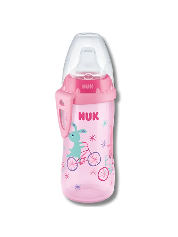 Le bec intègre le concept de ventilation NUK Air System et possède une zone douce pour un confort optimal. La tasse est fabriquée en polypropylène (PP) robuste et résistant, et le capuchon transparent protège le bec de la saleté.
