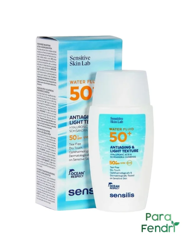 SENSILIS Water Fluid SPF50+ 40ML est une protection solaire visage très haute protection à la texture ultra-légère à base d’eau. Elle fond instantanément sur la peau, offrant un fini invisible, soyeux et mat avec une sensation de fraîcheur. Sa formule associe filtres UVA/UVB, acide hyaluronique hydratant, allantoïne et extrait de Schisandra aux propriétés apaisantes, ainsi que la vitamine E pour une action antioxydante. Elle protège efficacement contre le photovieillissement, hydrate durablement et apaise rapidement la peau. Résistante à l’eau et à la sueur, elle convient à tous les types de peau, même sensibles.