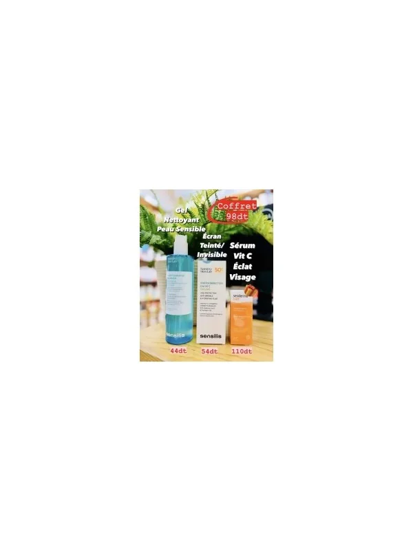 Coffret: Gel nettoyant Sensilis & Ecran teinté OU invisible + CADEAU Sérum SESDERMA Vit C