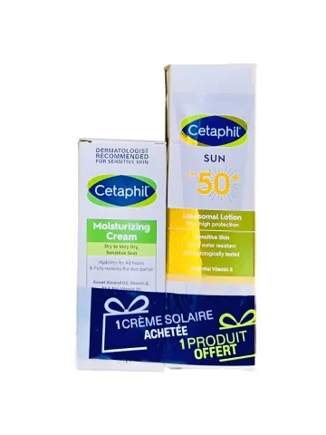 - Crème Hydratante Cetaphil 50g (offerte) : hydrate intensément, apaise et renforce la barrière naturelle des peaux sensibles.
