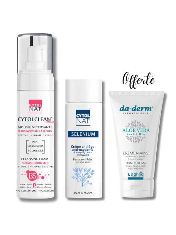 CYTOLNAT - MOUSSE NETTOYANTE PEAUX NORMALES A SECHES + SELENIUM CREME ANTI AGE + DADERM CREME MAINS OFFERTE