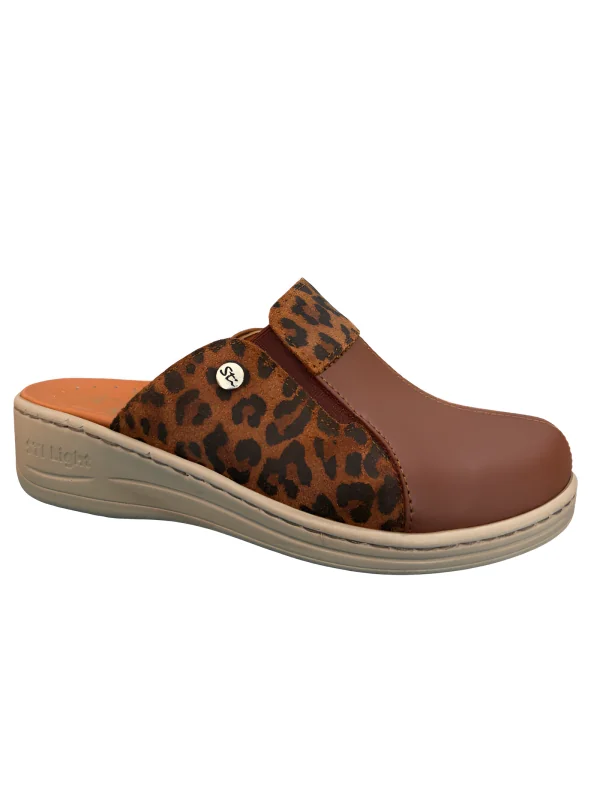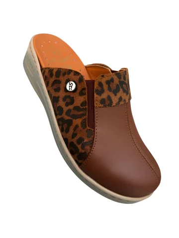 STI LIGHT - SABOTS ORTHOPEDIQUES MARRONS DETAILS LEOPARD FEMME