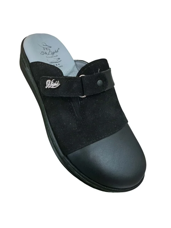 STI LIGHT - SABOTS ORTHOPEDIQUES NOIR DAIM DETAILS PAILLETES FEMME