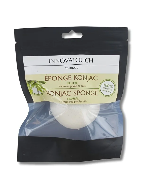 Innovatouch Éponge Konjac Neutre nettoie et exfolie délicatement la peau, élimine les impuretés et les cellules mortes, adaptée à tous types de peau, 100% naturelle et biodégradable.