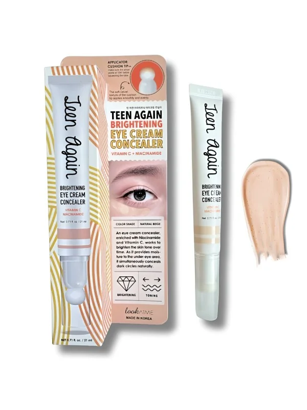 Crème contour des yeux illuminatrice Teen Again, enrichie en Vitamine C et Niacinamide, hydrate, camoufle les cernes et unifie le teint.